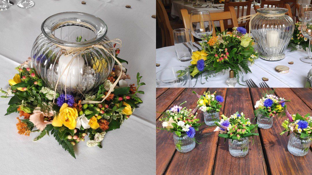 "Vielen Dank für die tollen Sträuße und die schöne Deko...du hast die Tische super dekoriert!! Danke nochmal für alles!!"