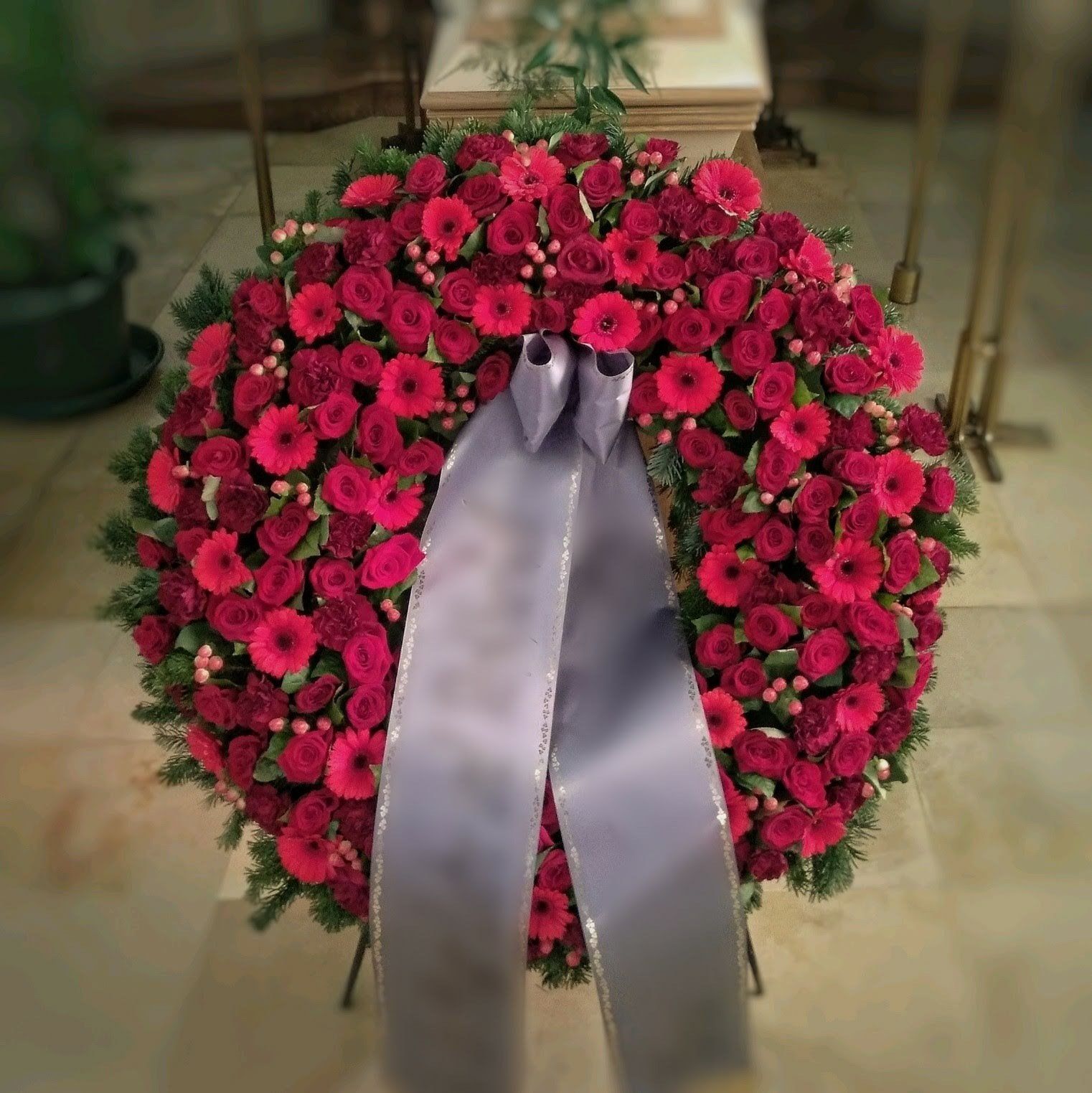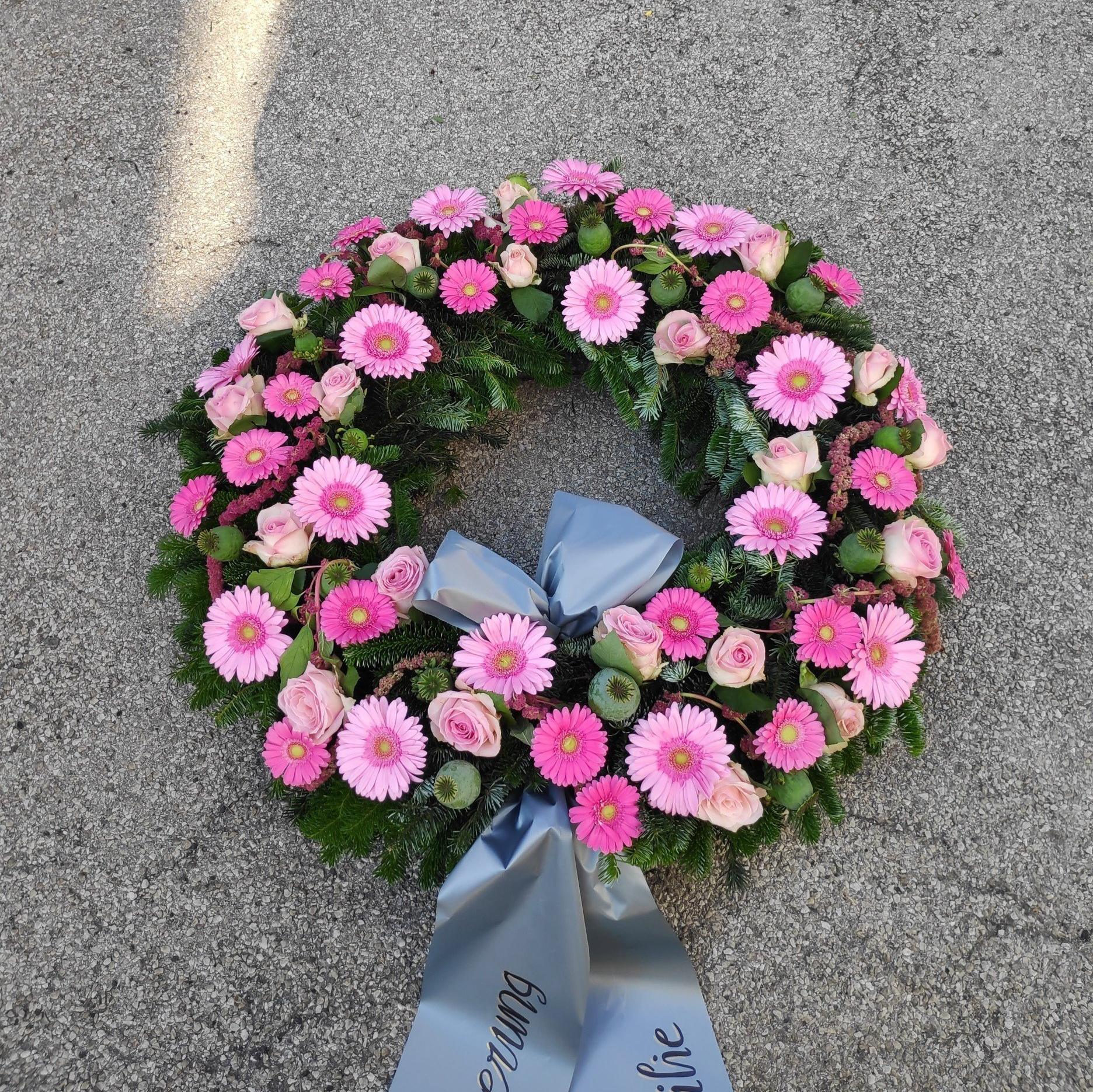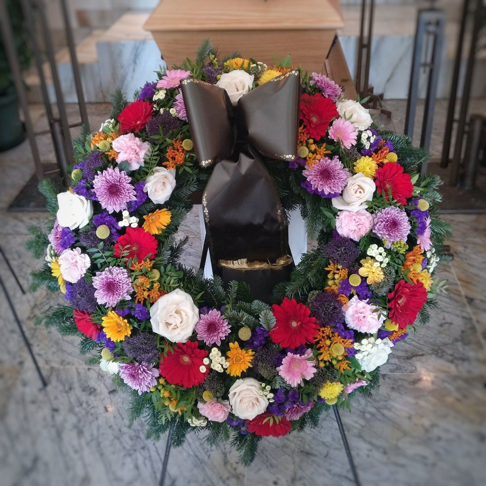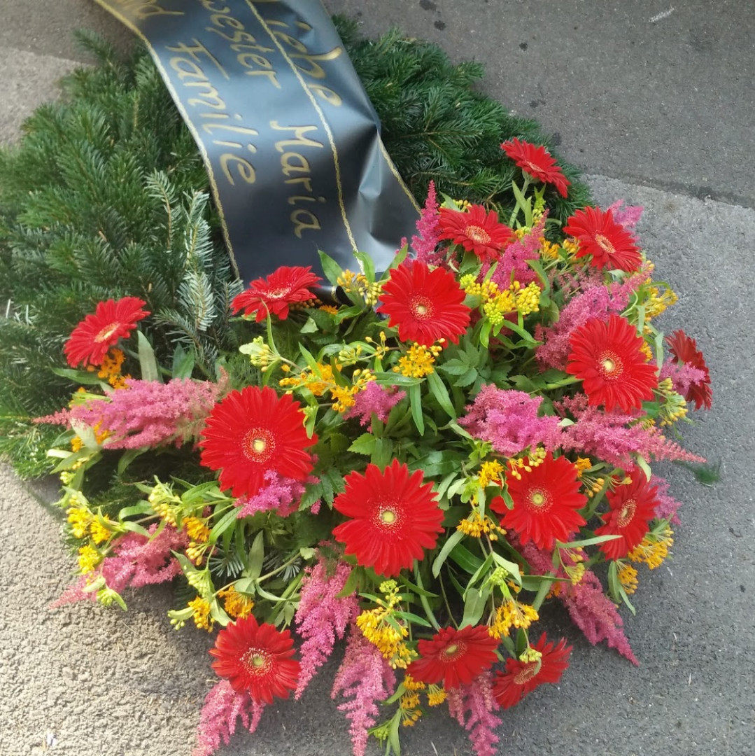 Leider können wir Sie in dieser schweren Zeit nur insofern unterstützen, als dass wir hinsichtlich der Blumenarrangements verlässlich, professionell und nach Ihren Wünschen arbeiten.
